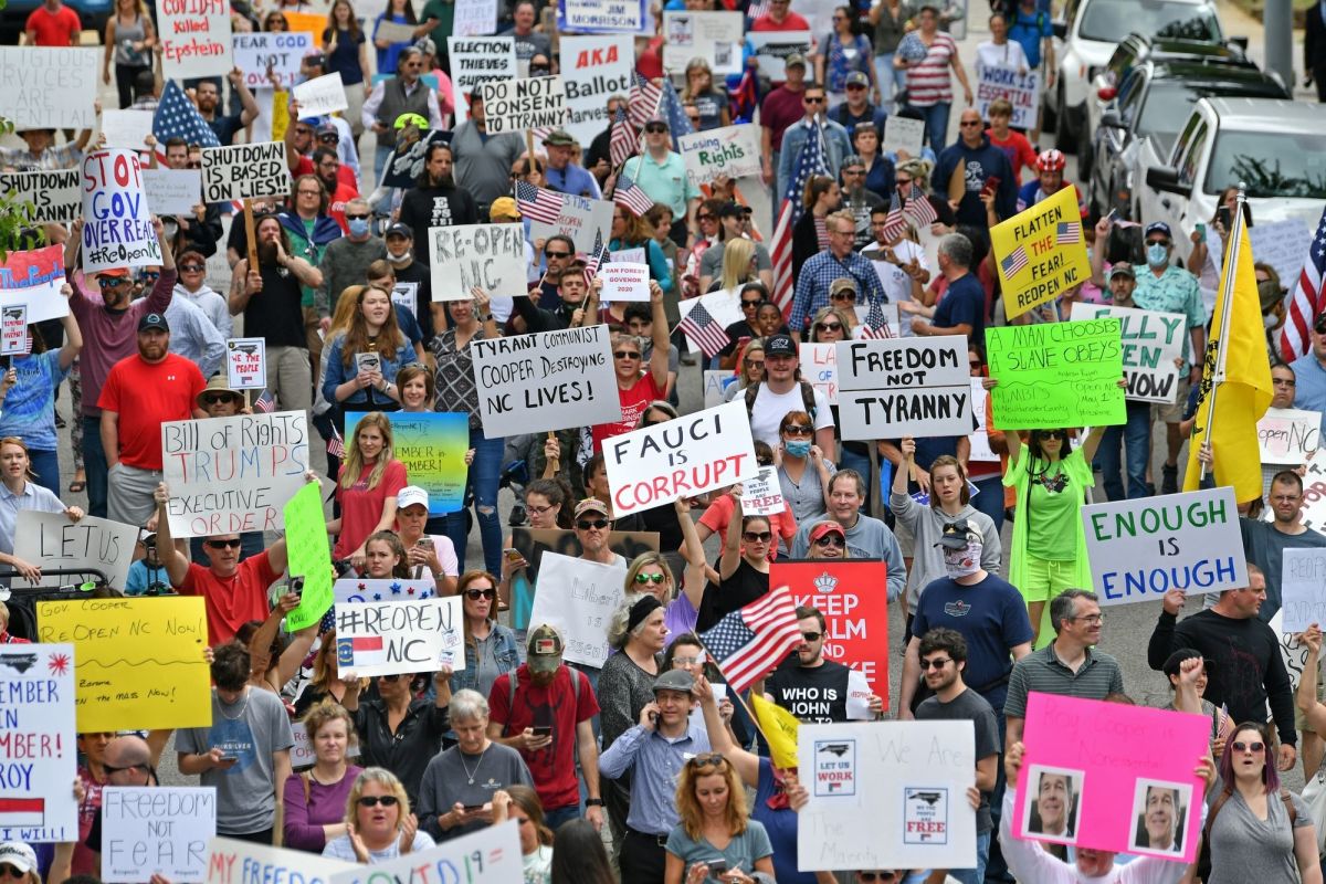 Protestniki so bili opremljeni s transparenti v podporo Trumpu, guvernerje držav, ki vztrajajo pri »zaprtju« držav, pa so označevali za korumpirane in tiranske. Tarča njihove jeze je bil tudi Anthony Fauci, priznani imunolog in v času koronakrize najvidnejši Trumpov strokovni svetovalec, ki podpira ukrepe »družbenega omejevanja«.