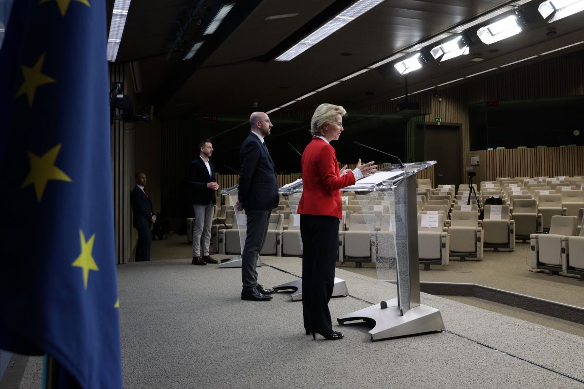 Po videokonferencah vrha EU so bile doslej pripravljene hibridne novinarske konference. Novinarji so še vedno imeli dostop do stavbe in so lahko bili fizično navzoči na novinarski konferenci, obenem pa so sprejemali tudi vprašanja, zastavljena vnaprej, na primer po aplikaciji WhatsApp ali po elektronski pošti. Po novem fizična navzočnost zaradi vsesplošne zaostritve izrednih ukrepov sicer verjetno ne bo več mogoča.