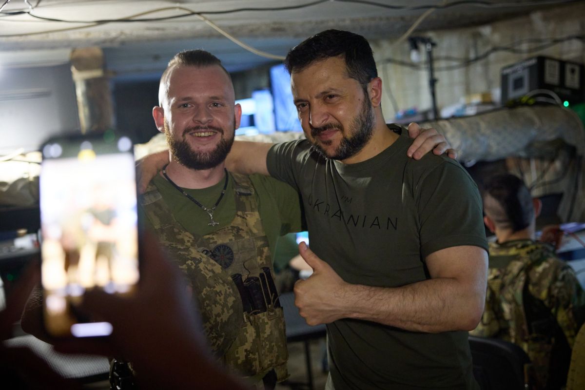 Ukrajinski predsednik je v ponedeljek popoldan obiskal pripadnike ukrajinskih sil v bližini mesta Bahmut na vzhodu Ukrajine, kjer so potekali hudi spopadi, in v regiji Zaporožje na jugu države.