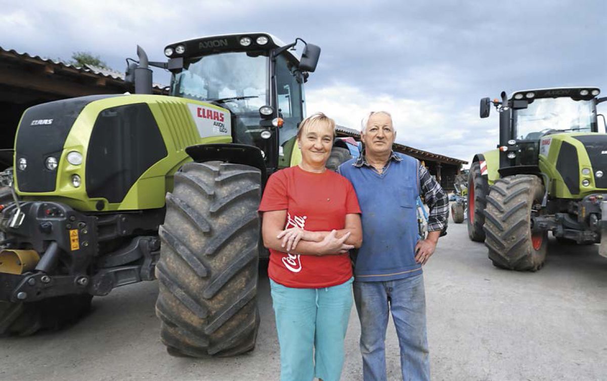 Ignac in Tončka Berden iz Turnišča (na fotografiji) ne skrivata ponosa nad svojo impresivno kmetijsko mehanizacijo, na čelu katere sta dva traktorja nemške znamke Claas, vsak s 264 konjskimi močmi, vreden okoli 150 tisoč evrov.