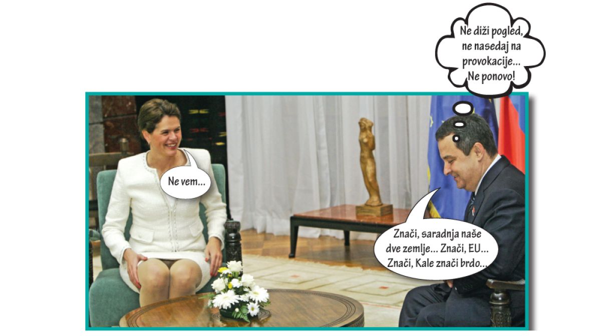 Alo.rs se je obregnil ob posnetke sedečih Dačića in Bratuškove in piše, da se je Ivica menda komaj zadržal, da ni buljil v mednožje slovenske premierke v krajšem krilu. Uspel se je obvladati, saj ima s tovrstnimi "atentati" že izkušnje.