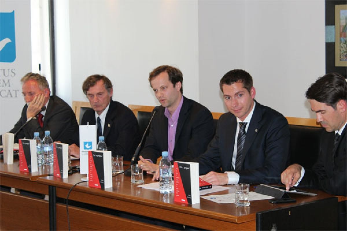 Povod je bil izid prevoda knjige Pot v propad avtorja Axela Kaiserja, ki je izšel pri Inštitutu Karantanija in založbi Učila. Do zadnjega mesta napolnjena dvorana je imela priložnost prisluhniti zanimivi več kot dveurni razpravi o vzrokih in ozadjih, ki bi naj po mnenju gostov sprožila in razmahnila trenutno finančno-gospodarsko krizo, in o gospodarskih razmerah v Sloveniji.